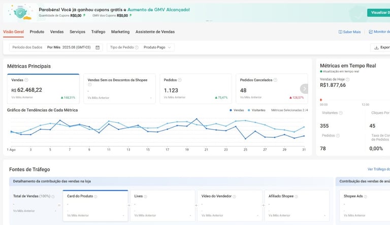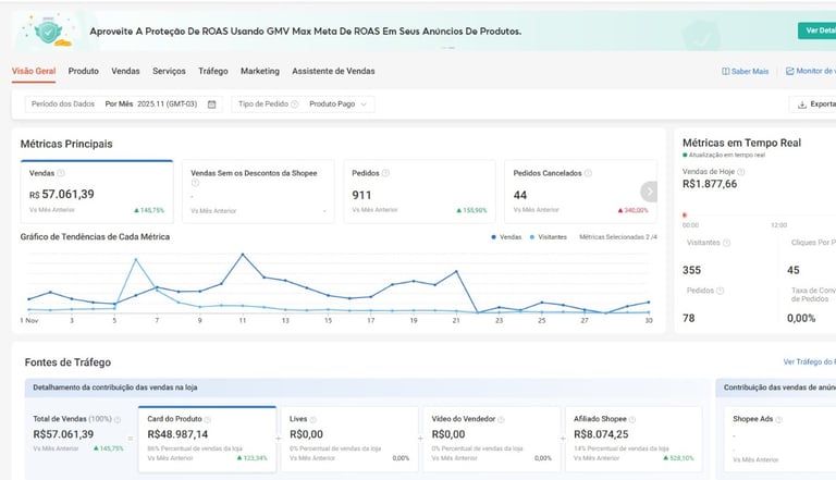 ✅ Cadastro de conta em 3 marketplace (Shopee, Mercado Livre e SHEIN)