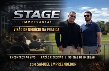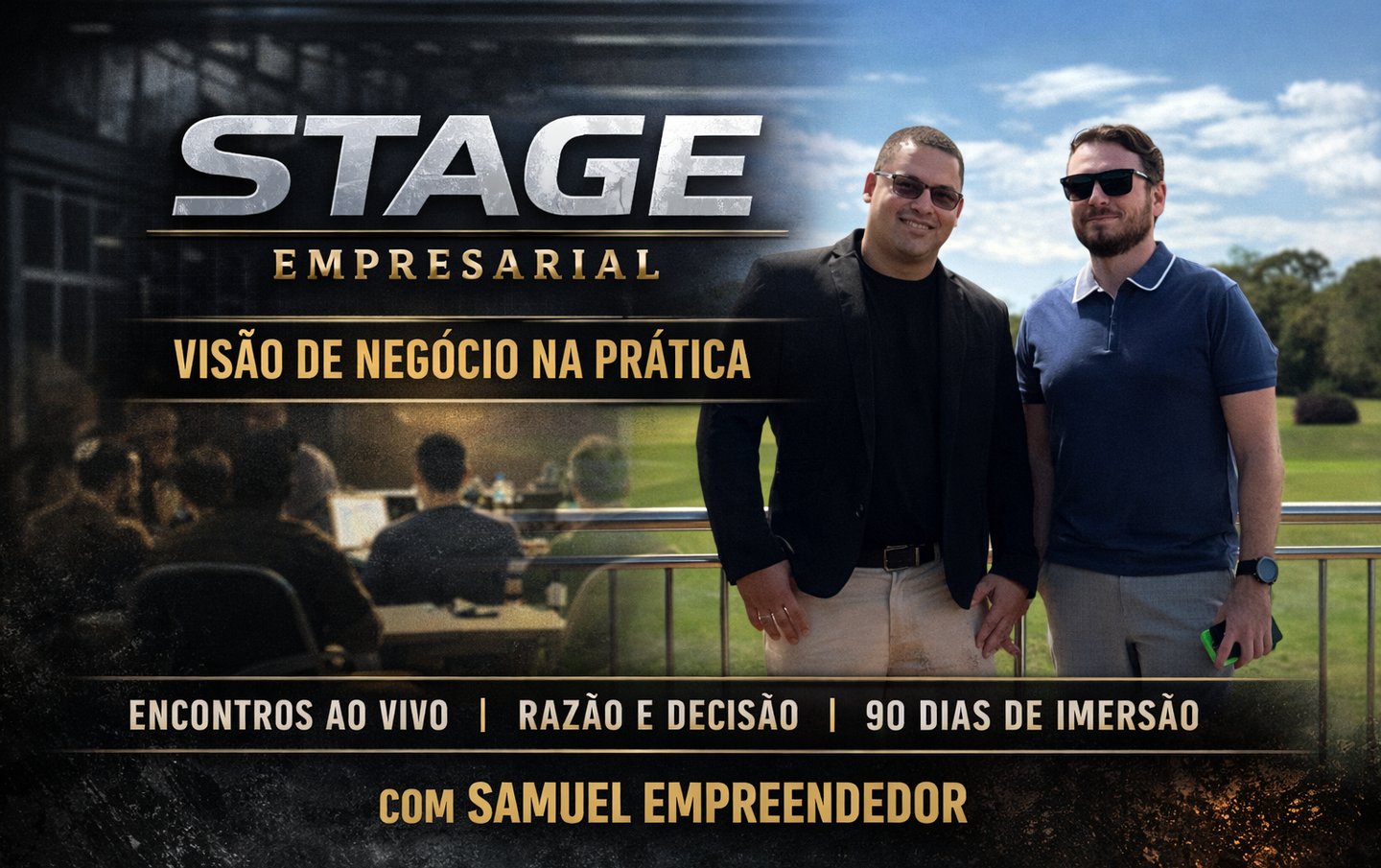O Stage Empresarial é um ambiente onde empresários e futuros empresários acompanham bastidores reais, decisões estratégicas e direcionamentos práticos diretamente com Samuel.